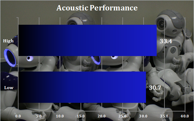 Ambient noise in the room is around 20-25dBa. We measure from a distance of around 1 meter from the closed chassis and 4 foot from the ground to mirror a real world situation.