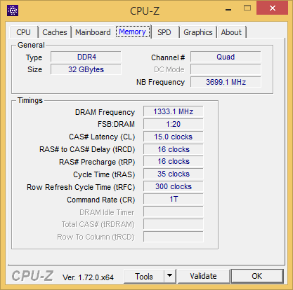 This is supplied as four 8GB DIMMs, taking up half the slots on the ASUS X99-E WS motherboard. So there is room to upgrade to the motherboard's 128GB maximum, but you probably won't need to during the lifetime of the system.