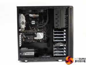 The PC Specialist Nucleus is built in a Fractal Design Define XL R2 Black chassis, which is absolutely huge and packed with features.