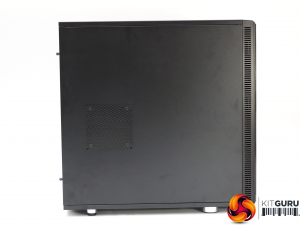 There is a fan vent on the side, but the space intended for a water cooling radiator is on the top. The front is completely smooth and featureless, with the power and reset buttons on the top at the front, alongside four USB ports and minijacks for headphones and a microphone. This is further evidence that a floor-standing position is intended.
