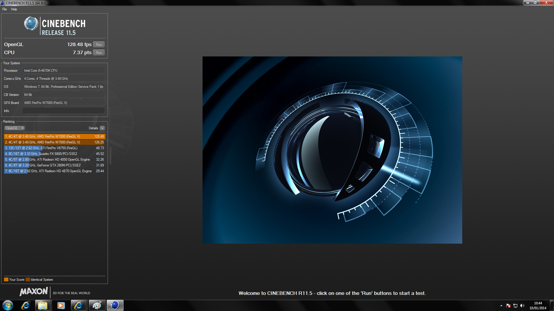 We have yet to analyse a lot of hardware with the latest release of Cinebench, but the results in R15 appear to parallel the abilities with R11.5, showing good CPU rendering for a quad-core and excellent OpenGL.
