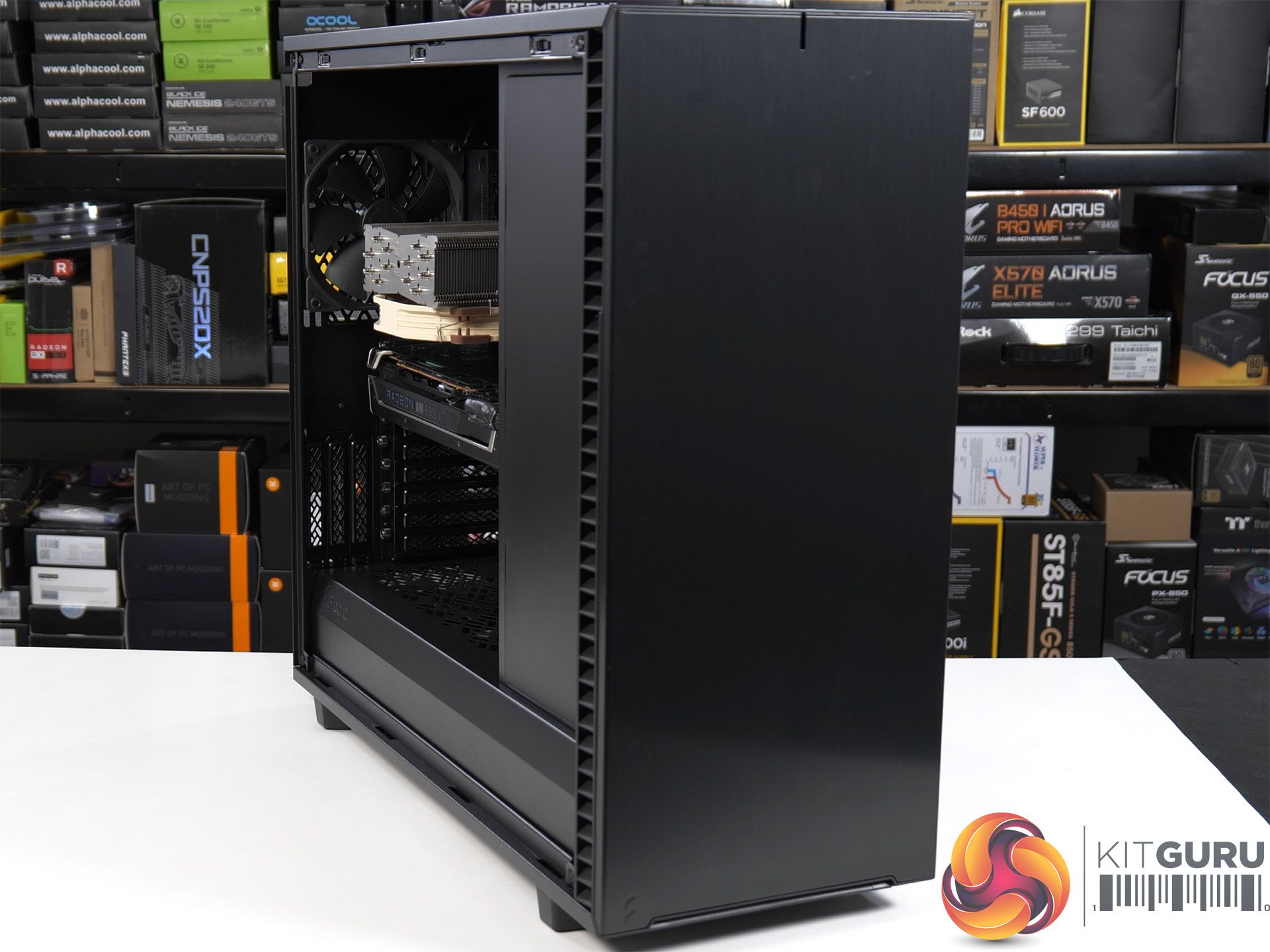 PC Specialist chose to use the case in storage mode with the mid-section of the case moved to open up the large number of drive bays. As you will have seen in our video, there is only a single 2.5-inch SATA SSD on the back side of the case, which means you have a huge amount of space. Quite why PC Specialist did not use some of that space for more cooling fans is a mystery.