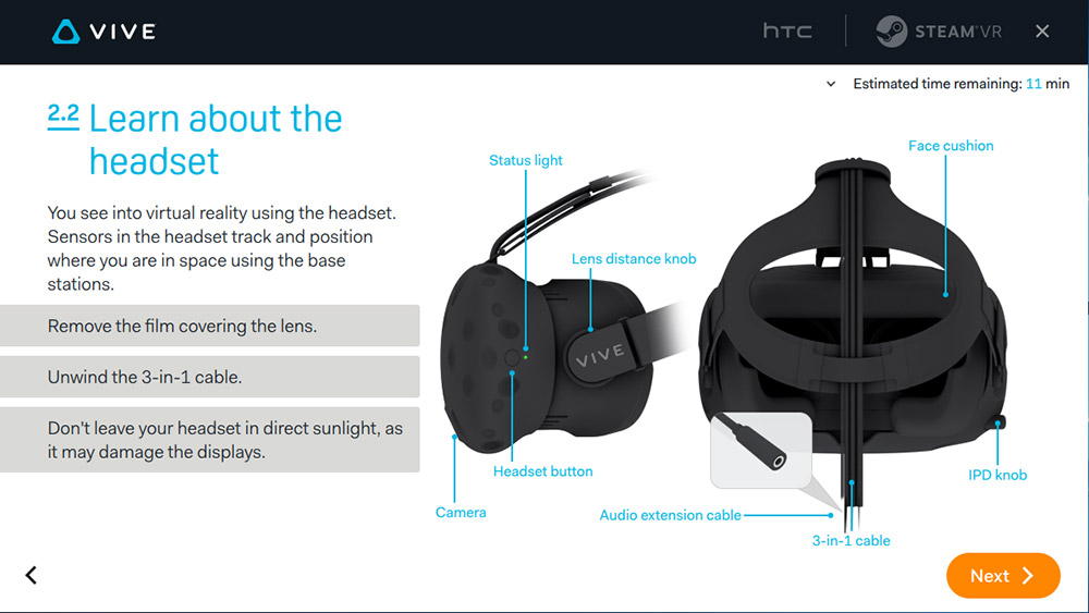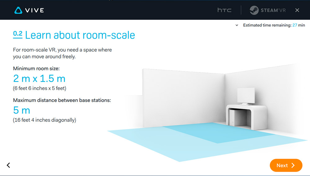 You will need to orient your room and measure out your space using one of the controllers, but again even though this is not something you will have done with any products in the past, Valve holds your hand very well throughout.