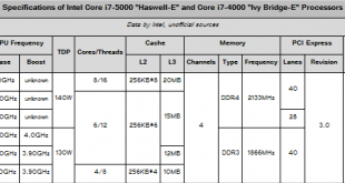 Read More »Specifications of Intel Core i7 ‘Haswell-E’ processors unveiled