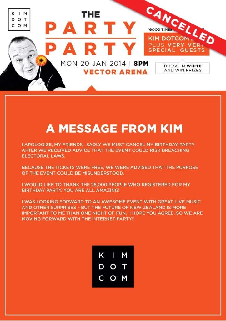 Kim Dotcom recently announced two bigs things: that he was launching a political party and that he was throwing a “Party Party,” to celebrate his 40th birthday, the launch of his new album and the two year anniversary of his Megaupload arrest. Now though he's had to cancel the latter, …