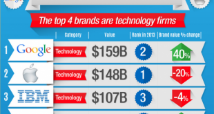 Out of the top ten most valuable brands in the world, the top four are all tech companies with Google leading the pack after overtaking Apple as the world's most valuable brand by $11 billion. Following on from Apple and Google in the two top spots, are IBM and Microsoft …