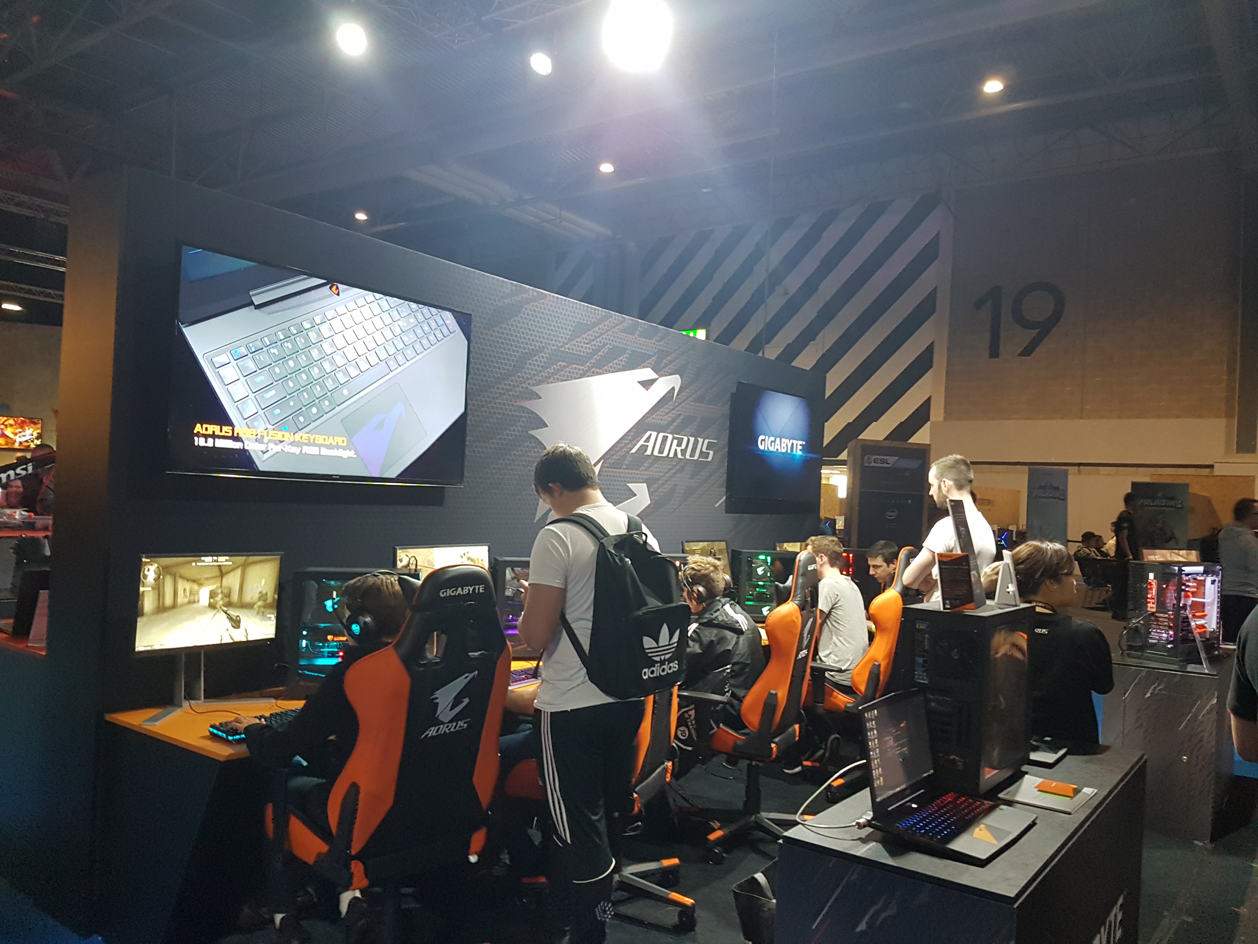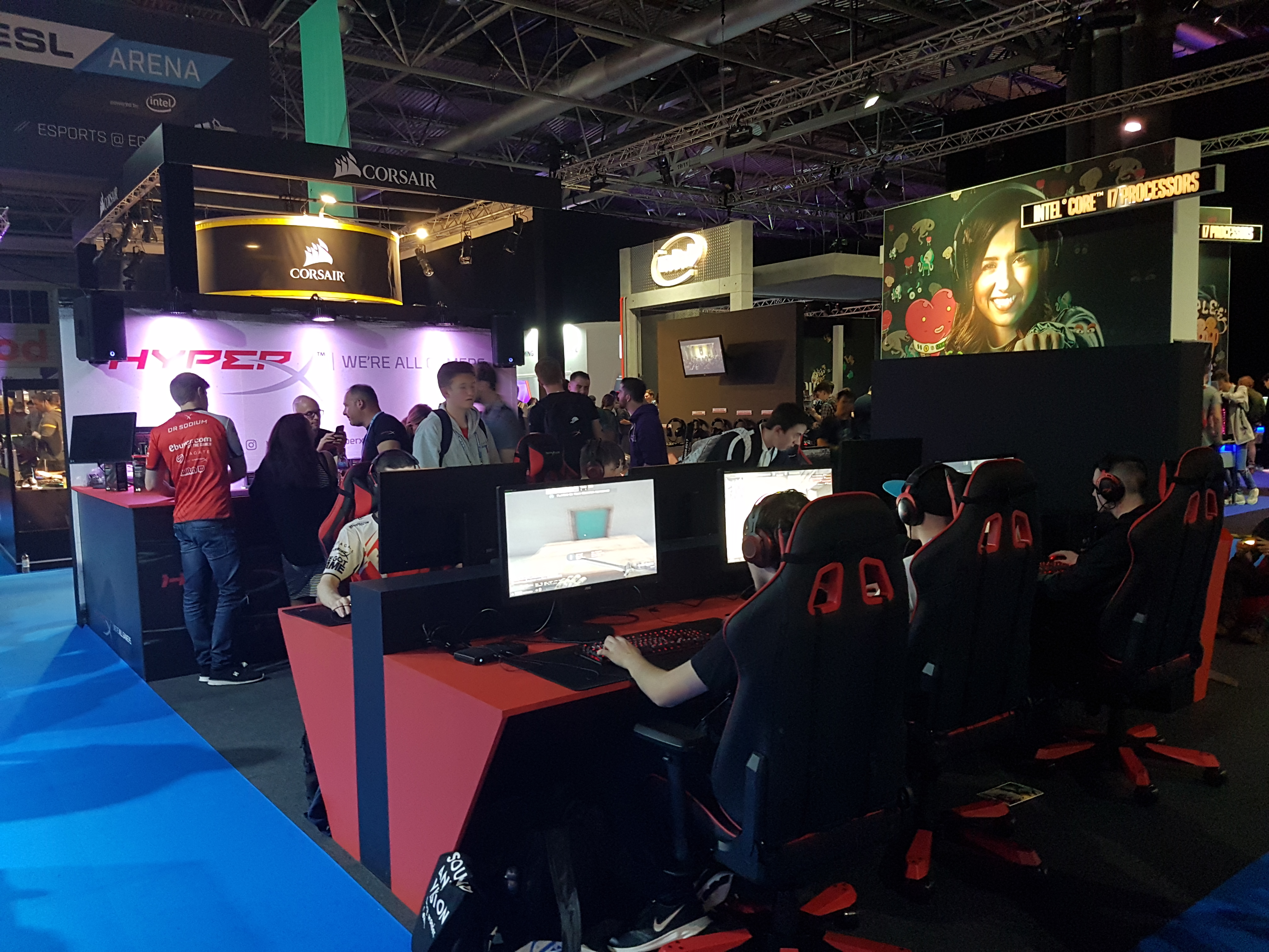 The ESL arena had a couple of huge stages that hosted League Of Legends, Counter-Strike: Global Offensive, Rainbow 6: siege, Splatoon 2, Rotor Rush and Pokken tournaments. This is also where most of the PC hardware was located with Intel, MSI, Hyper X, Asus, Gigabyte, Zotac, Corsair & Alienware all showing off their latest hardware.