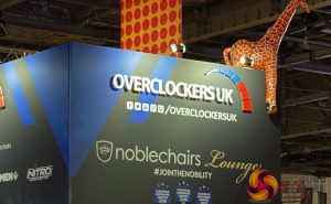 The Overclockers stand is massive – with a huge giraffe on top, just in case you miss them. On the stand itself they have some new builds from 8Pack and a streaming booth broadcasting live. You can also get hands on with the Endgame Gear XM1 mouse – which claims to be the fastest in the world. There are plenty of EGX-only discounts on offer as well.