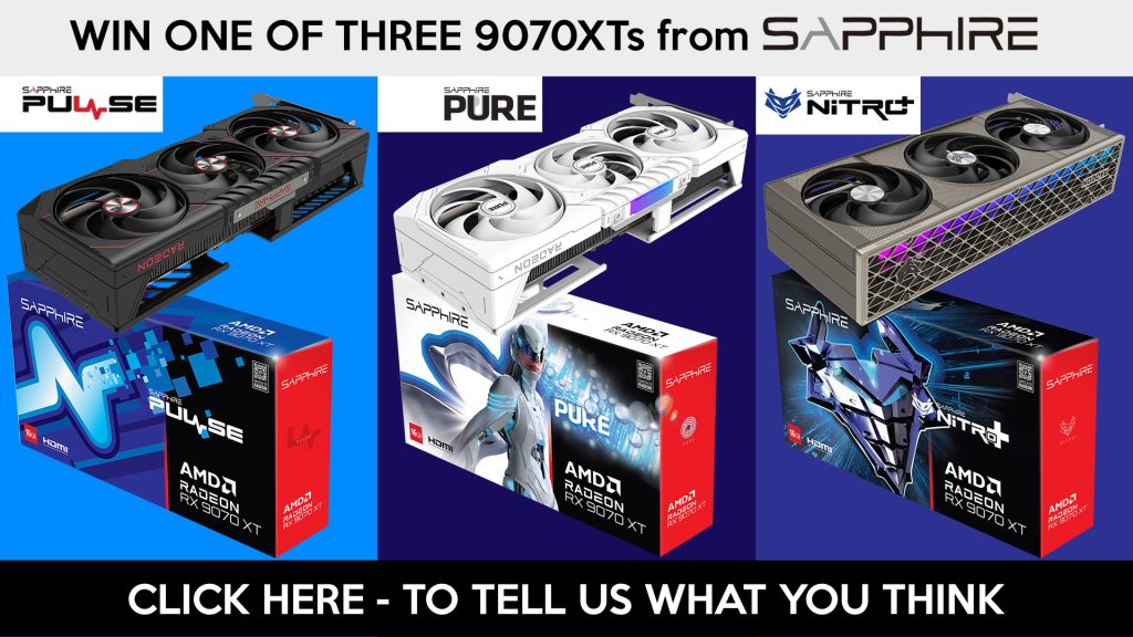 The KitGuru Reader Survey helps us understand what kind of products you are keen to learn more about in 2025/2026. It takes less than 5 mins to complete and it really helps us to target our editorial efforts. As a thank you to those of you who participate, we are offering the chance for you to win one of THREE brand new Sapphire RX 9070 XT graphic cards!