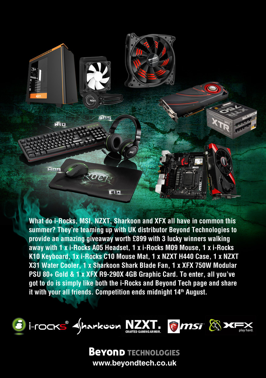 This competition brings together the likes of i-Rocks, MSI,NZXT, Sharkoon and XFX to offer some really impressive prize packs, but there's only three of them, so you better have your fingers crossed, there's going to be a lot of entrants for this one.