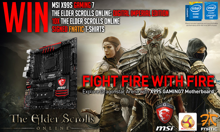 If there's one thing we know how to do well here at KitGuru, it's give things away. We're not kidding. If you keep an eye on our Facebook, we're giving away something almost every day, and this one is no different. Today we've teamed up with MSI and Intel, in order to give away not only a brand new X99S Gaming 7 motherboard, but also a Digital Imperial Edition of the Elder Scrolls Online, 10 standard versions of the MMO and a bunch of tshirts signed by the Fnatic pro gaming team!