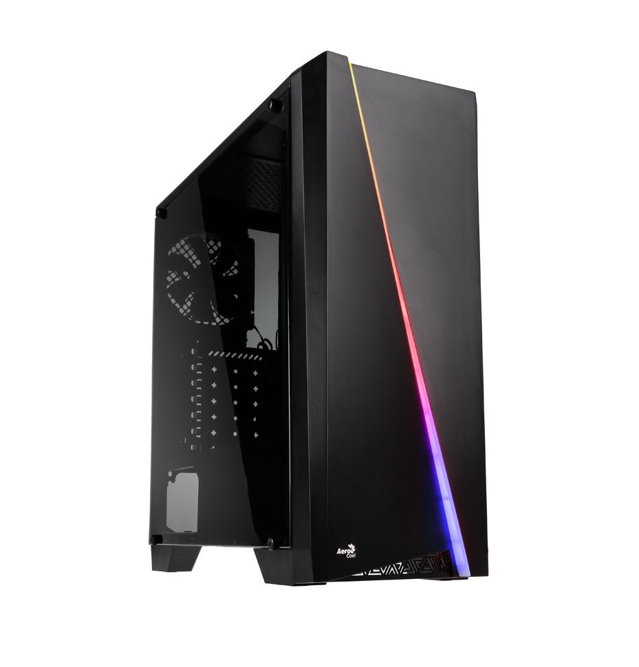 Today we are giving away the Aerocool Cylon RGB Midi Tower PC case. It is one of the nicest looking mid-tower cases around right now, with a sleek, black design, an RGB strip on the front of the case, a PSU shroud to hide your cables and plenty of room for components. You can see more in the gallery below: