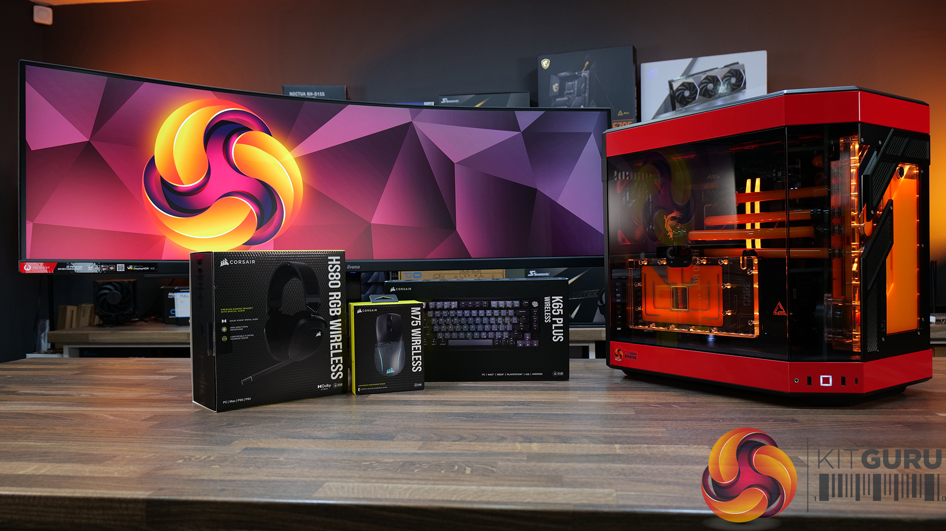 As a reminder, the main prize today is our special custom-built gaming PC, along with a new 45-inch superwide gaming monitor, as well as a set of Corsair gaming peripherals for a complete gaming setup overhaul. You can see images of the build, and accompanying accessories, below:
