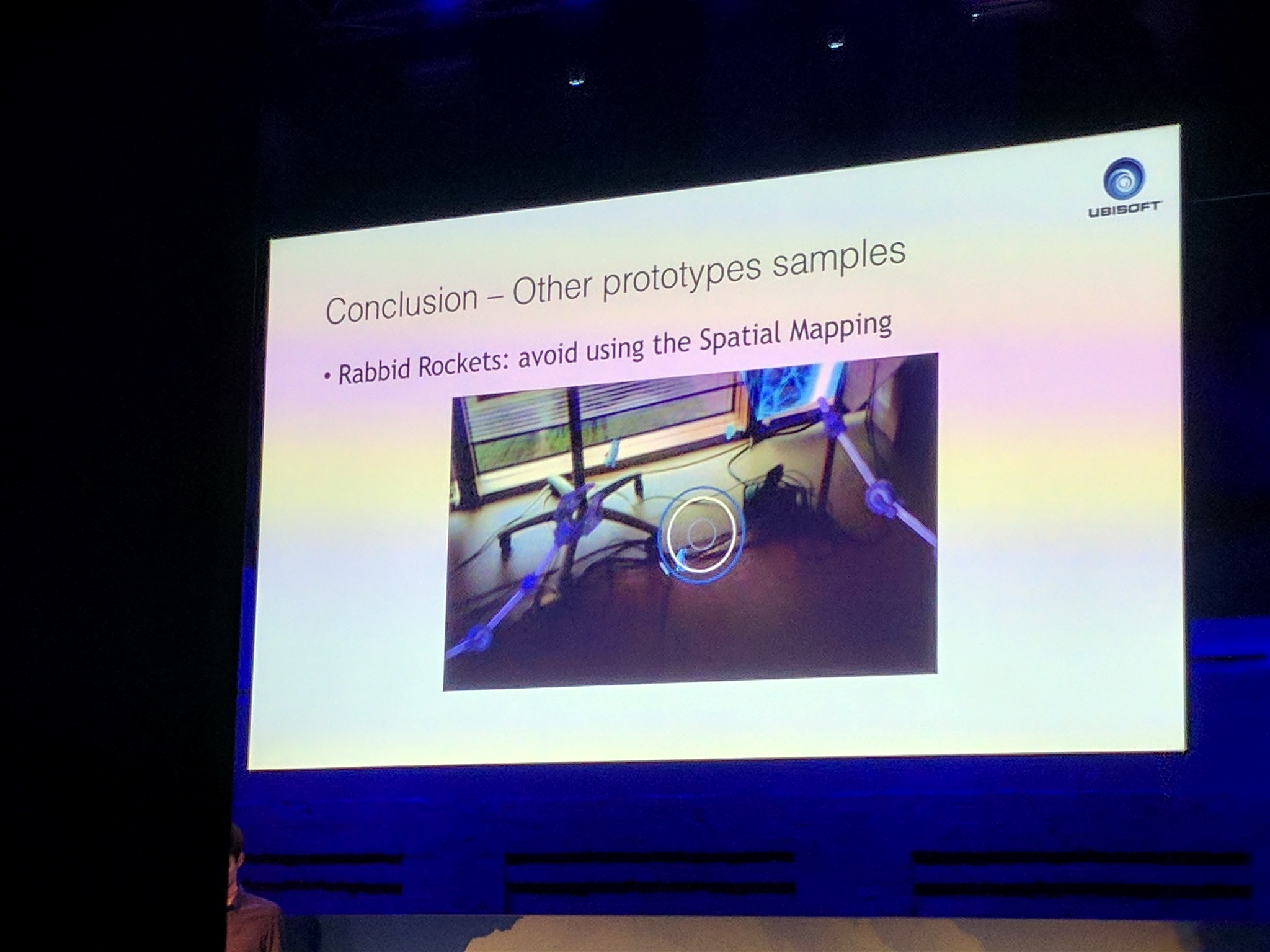 Ubisoft is also continuing to experiment with Rabbids. Beyond the Mario+Rabbids crossover, Ubisoft has also been working on a mixed reality prototype called ‘Rabid Rockets', this game also uses Spatial Mapping technology and appears to play a bit like a first person shooter. There is a reticle in the centre of the screen and you look towards where you want to aim.