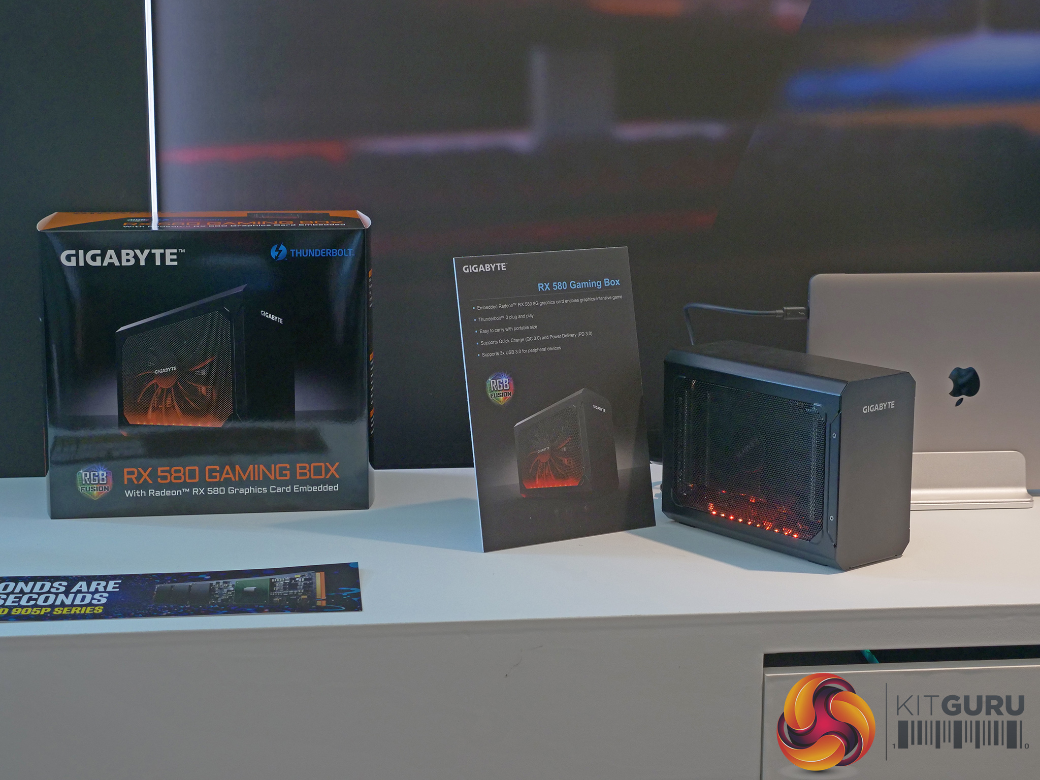 We also saw a range of motherboards, including the Z370 Aorus Gaming 7-OP – the ‘OP' referring to Intel Optane which allows for hard drive caching. Lastly, Gigabyte also had its RX 580 Gaming Box on display, which is an external GPU dock, and it can now be used with Apple Macs & MacBook models via Thunderbolt 3.