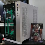Getting right into the nitty-gritty, Roman ‘der8auer' Hartung himself was at the Caseking booth, and he took Leo through some of his new custom cooling hardware. This included the ‘Dynamic Pulse' liquid cooled system, built inside the Lian Li O11 Dynamic, which makes use of an innovative new monoblock. Der8auer calls this the ‘first true monoblock' as it is cools not only the CPU and VRM, but also the network chip, motherboard chipset, and up to two graphics cards – all on a single block. That means there's just two fittings – an inlet and outlet – for the whole cooling system, completely eliminating the need for any tubing or interconnects between those components.