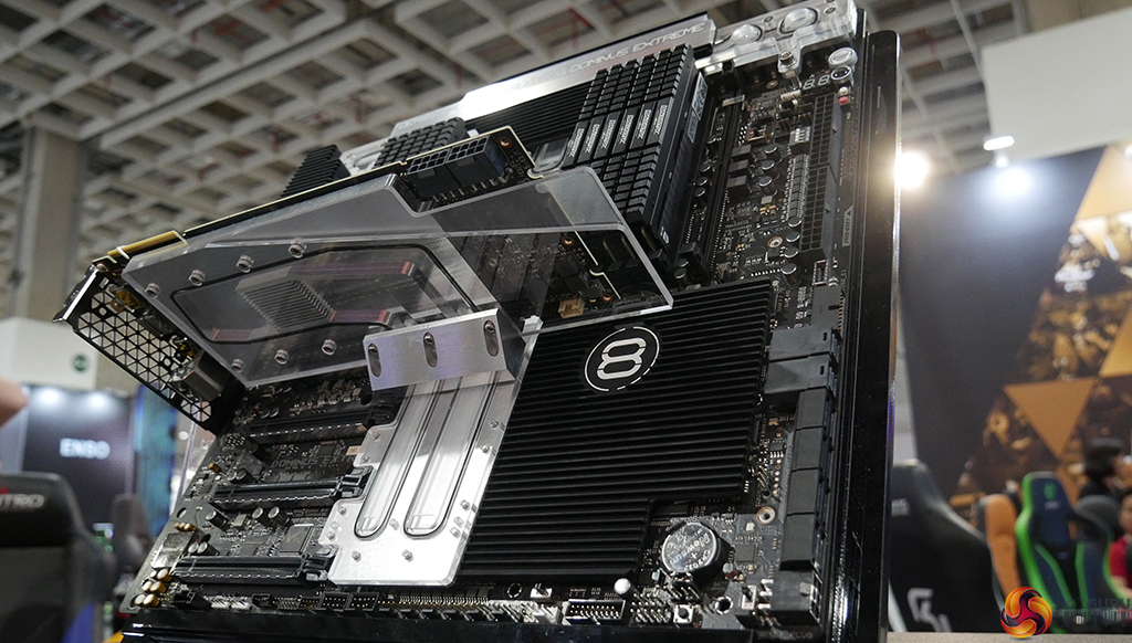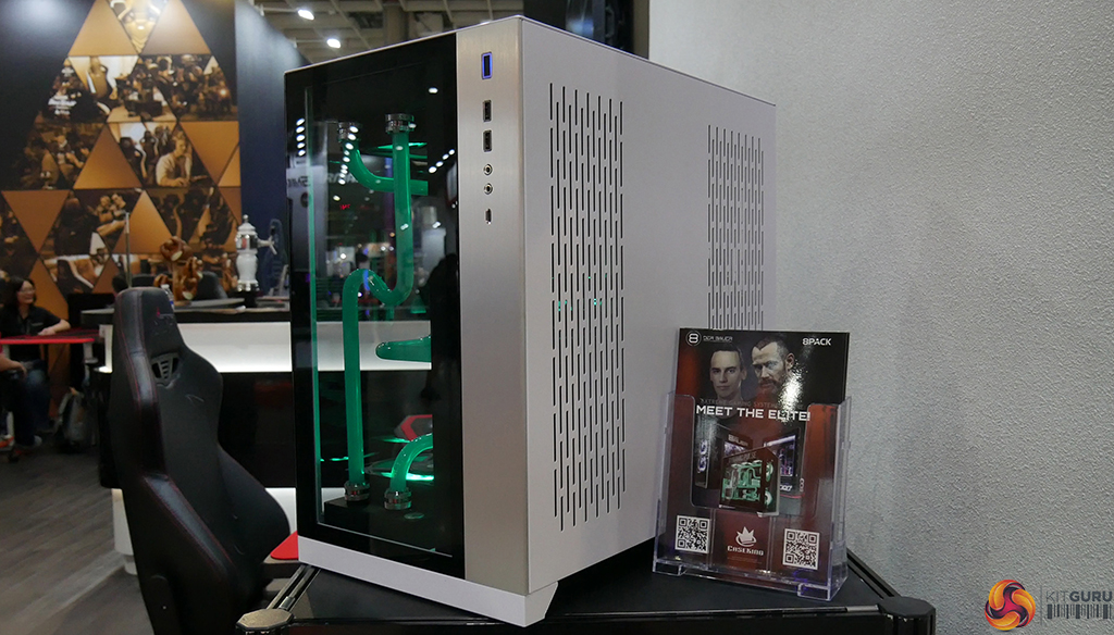 Stopping off at Caseking's booth on the show floor in Nangang, Leo was treated to a whole host of different products and hardware – from noblechairs to Kolink cases. What grabbed his eye most, though, were the custom loop systems on show from liquid cooling legends der8auer and 8Pack.