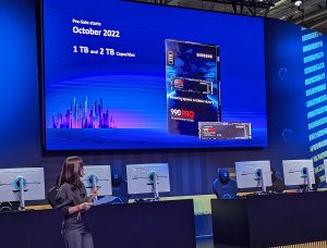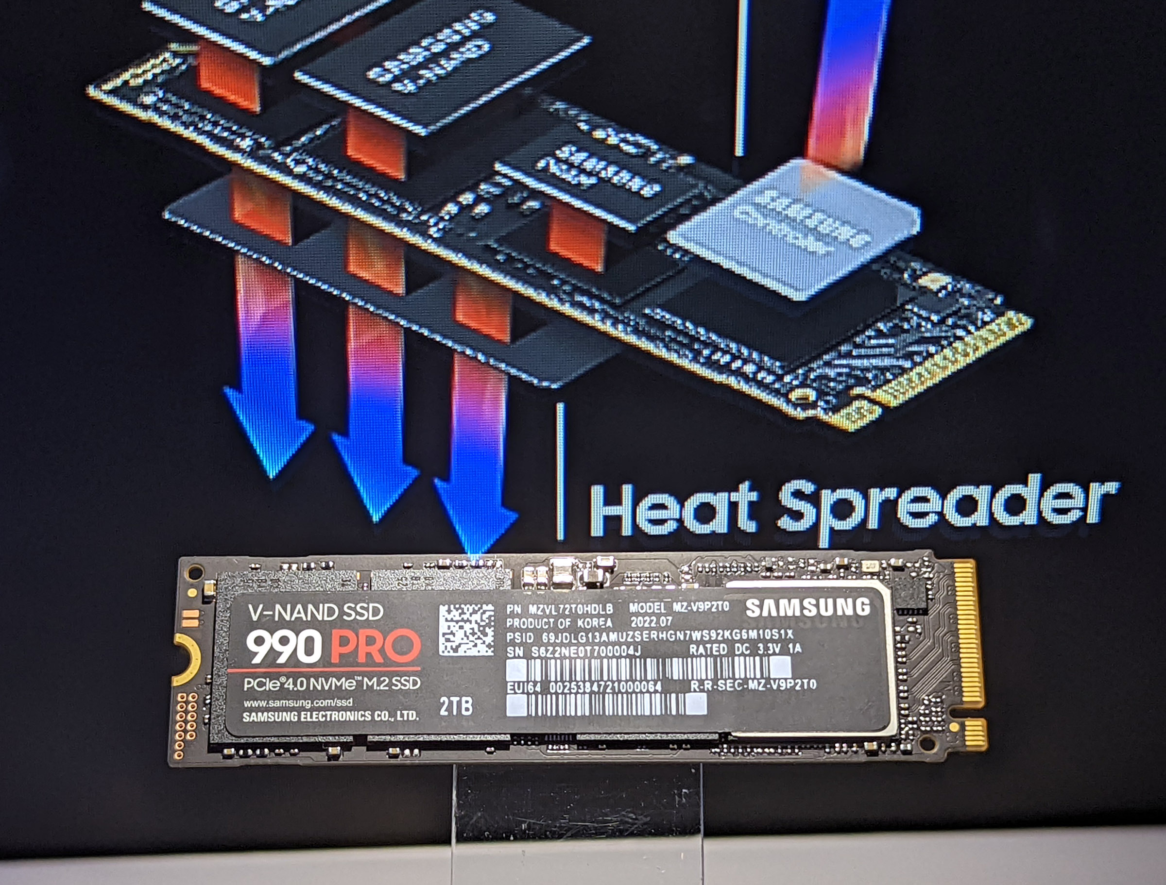 His first real stop, however, was to see Samsung and the new 990 Pro SSD. Hitting the market in October, this new drive features the company's latest V-NAND and a new proprietary controller, allowing for sequential read/write speeds of up to 7,450 MB/s and 6,900 MB/s, respectively. You can read our full coverage of the announcement HERE.