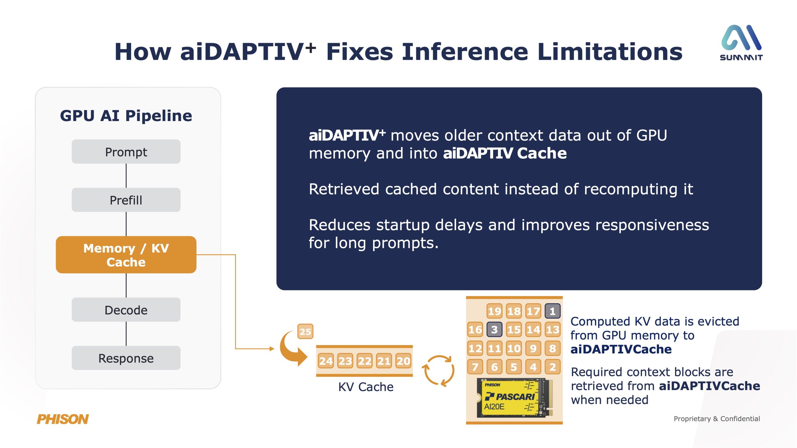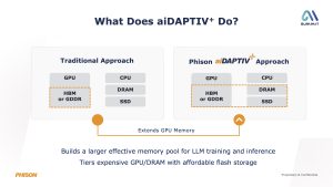 On top of that, aiDAPTIV+ addresses GPU KV cache limitations by moving older context data out of VRAM and into flash-based cache, allowing it to be reused instead of recomputed. According to Phison's presentation, this can deliver up to a 10x improvement in time-to-first-token for long prompts, improving responsiveness across a range of AI workloads.