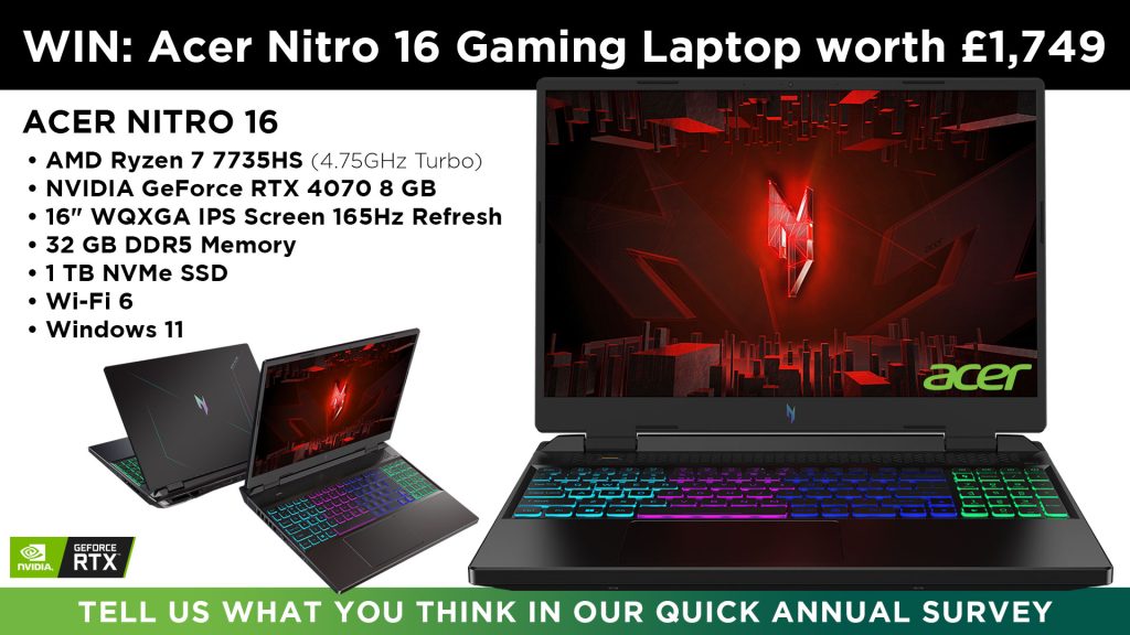 The KitGuru Reader Survey lets us understand what your find most interesting and what products you are keen to learn more about in 2024/2025. It takes less than 5 mins to complete and it really helps us to target our efforts. As a thank you to those of you who participate, we are offering a powerful Acer Nitro 16 gaming laptop to one lucky reader. For a chance to win, all you need to do is take our quick survey!
