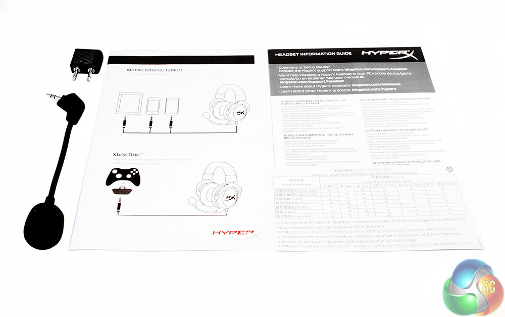 There are quite a few little extras with the Cloud II headset, including the set up and warranty leaflets. There is the flexible boom mic and a two pronged audio splitter, as well as a fabric carry case with draw string and side pocket for accessories.