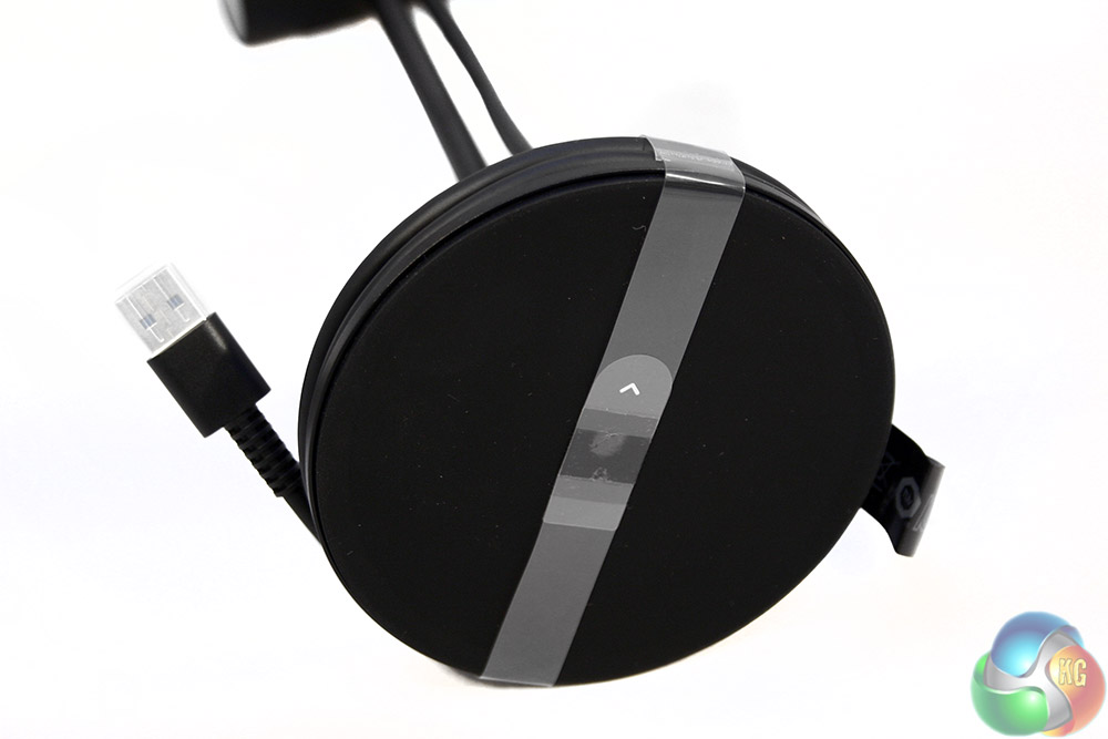 The camera hooks up to your PC via a single USB cable, which is at default attached to the base through a plastic strip – like most of the Rift's cabling. It has a small blue sticker to denote which way to plug-in the USB header and there is a small clip at the base of the stand to keep the cable tucked in if needed.