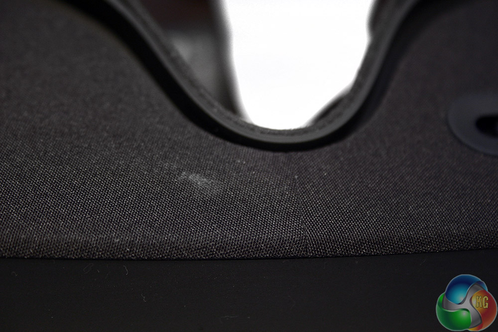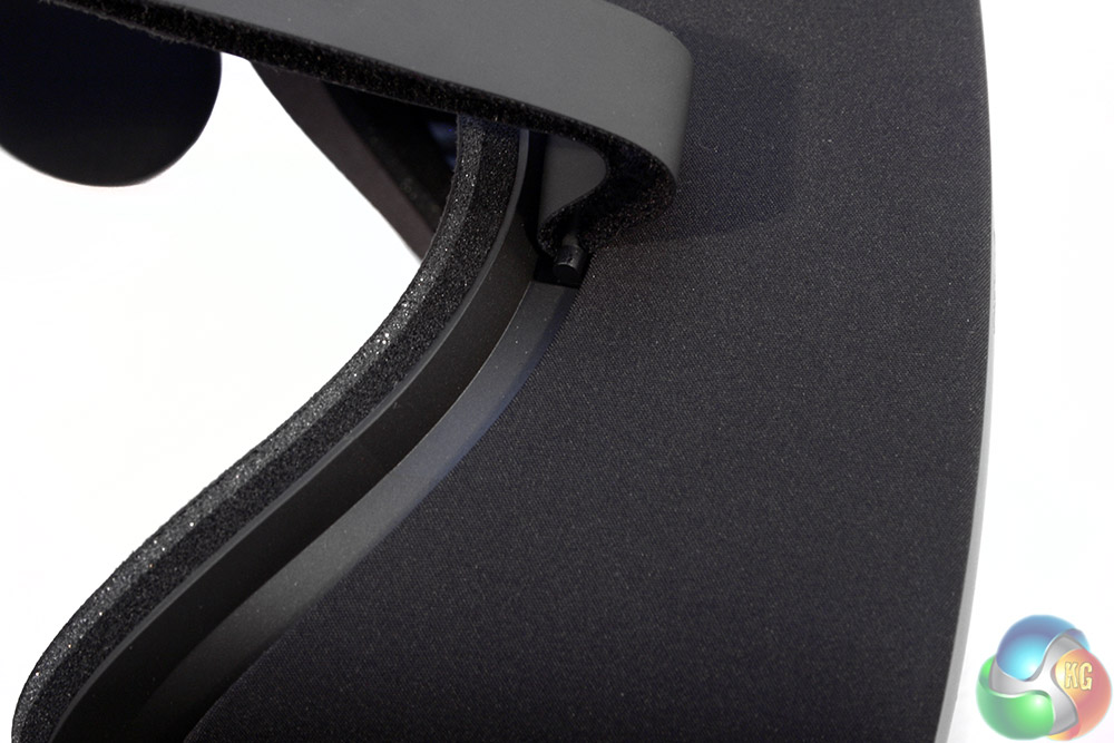 This fabric coating extends almost to the faceplate padding, but not quite. It tucks in neatly and there is not a stitch to be found. The whole device exudes a quality feel, though I was a little sad to see that my pristine, brand new out of the box Rift came with a scuff mark on the fabric.