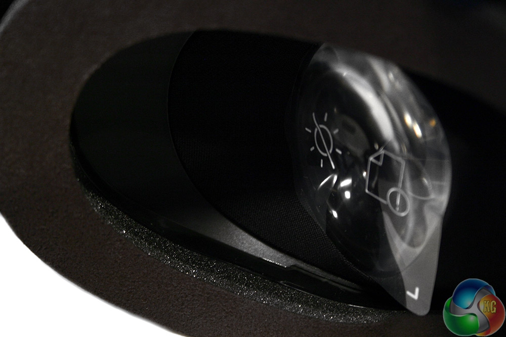 Looking inside, we get our first look at the lenses themselves. They are of an asymmetric design, which is different from the traditional circular lenses of the Rift DK1 and DK2. That is because Oculus created some very bespoke lenses, specifically with VR in mind and that should yield much better quality visuals than previous iterations – even more so than the extra resolution of the new displays allow.