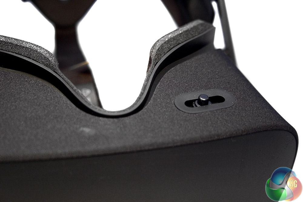 The underside of the headset has a sliding-switch, which controls the interpupillary distance (IPD): the distance between your pupils. This differs from person to person, so tweaking it to be right for you is a must when putting the headset on.