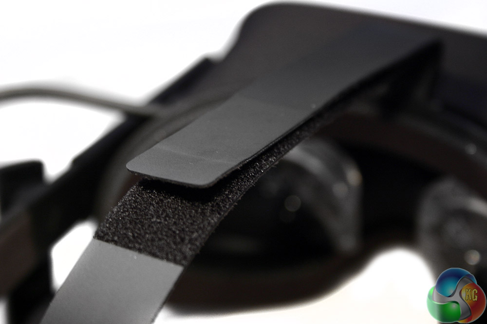 Another big change between the CV1 and previous developer kits, is the headband. This Rift uses a similar over the head strap, with velcro adjustments, but culminates in a triangular strap which sits over the ridge at the back of your head.