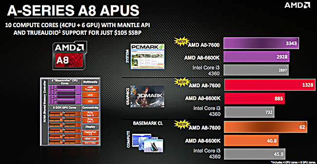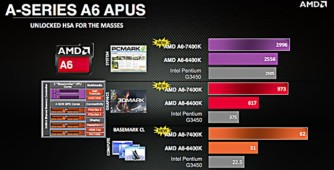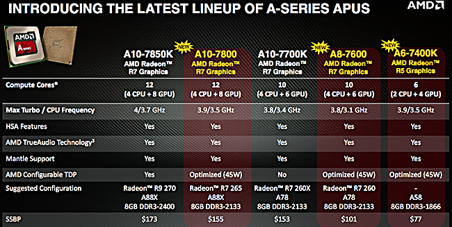 AMD is launching A10-7800, A8-7600 and A6-7400K which fills some obvious gaps in the Kaveri range and creates some equally obvious overlaps with the existing 6000 and 5000 models.