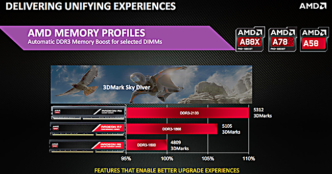 Radeon R5 runs up to DDR3-1600 for entertainment systems, Radeon R7 is the performance variety that works up to DDR3-1866 and at the top of the tree we have Radeon R9 Gamer memory with a maximum DDR3-2133 speed.