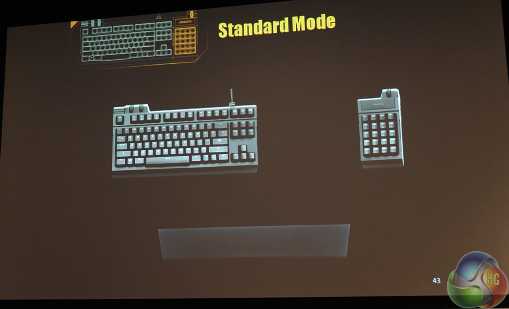 Turning to the K7 keyboard we have a mechanical keyboard with Cherry Red switches and a detachable macro/number pad. This pad is secured magnetically and snaps on and off with ease.