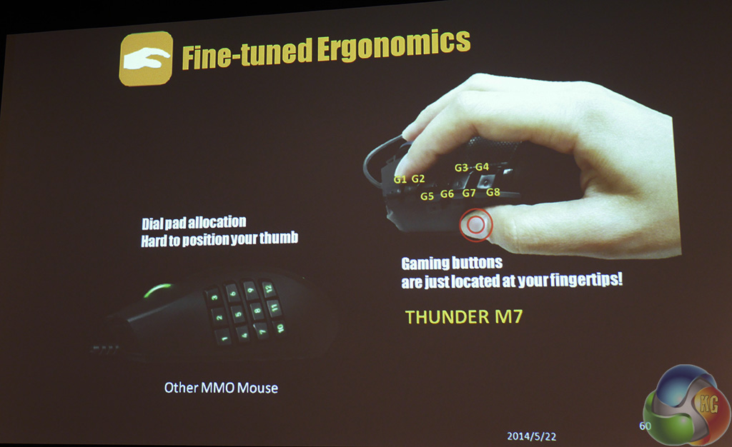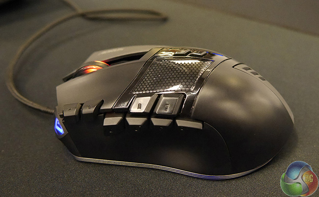 The main feature of the M7 Thunder mouse are the huge array of buttons in the thumb area that you can load with macro commands, all ready for your next on-line gaming session. This is a right handed mouse with no plans for a left handed version. If you look closely at the photos you'll see the M7 uses styling that shows a car engine at the heart of the mouse.