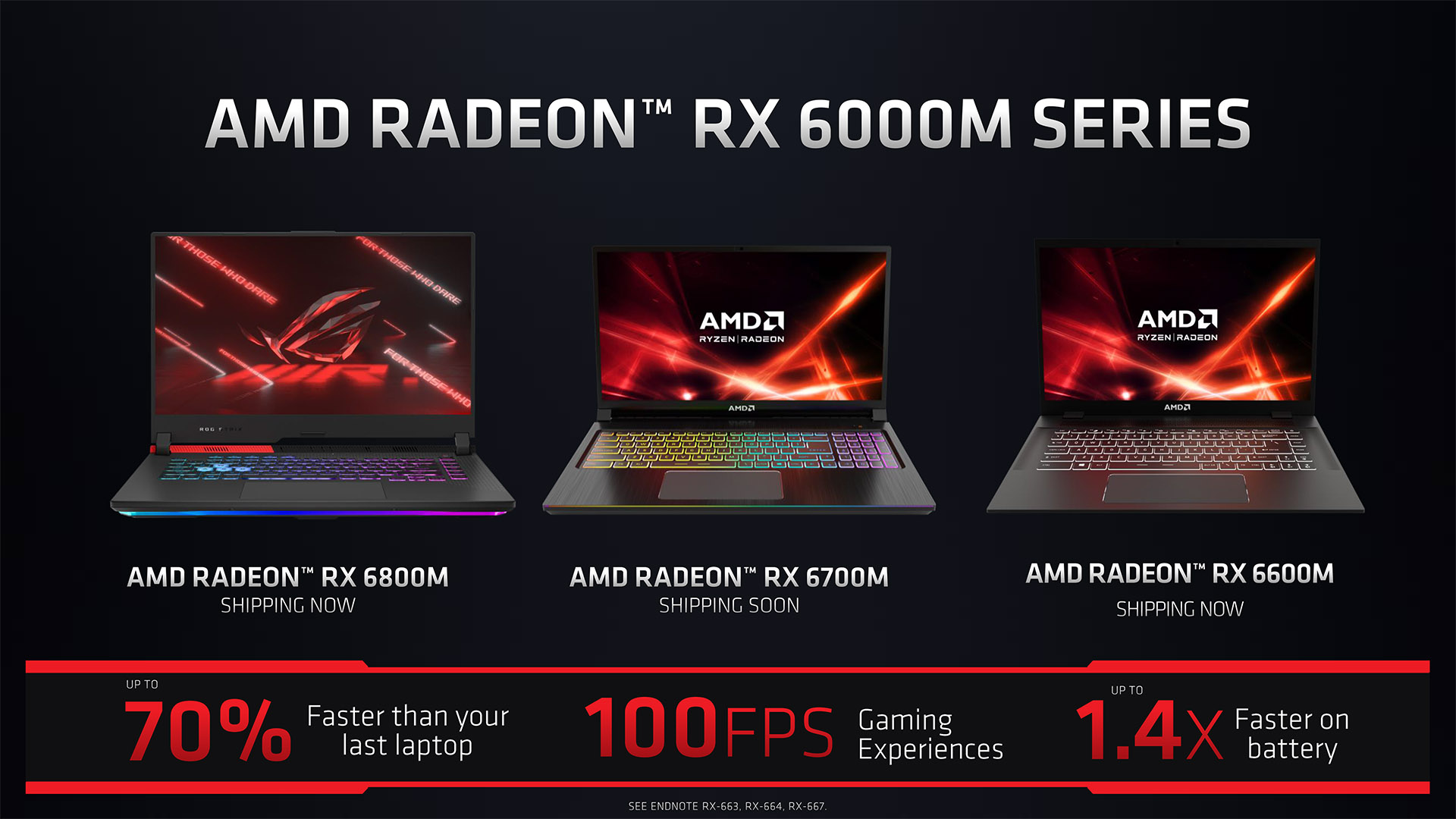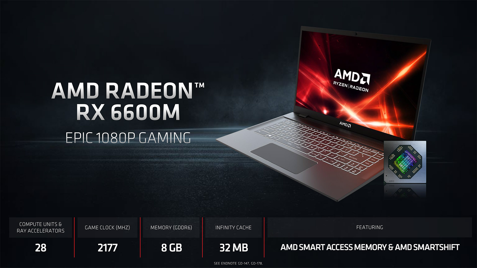 Next up we have Mobile RDNA 2 graphics for laptops. There are three versions – RX 6600M, RX 6700M and RX 6800M – which are all full power and with none of that Max-Q naughtiness where you are never quite sure what you are buying. At least, that is what we understood from AMD. As you will see in our video there are other wrinkles to the graphics side of thing as AMD is on the verge of releasing FSR (FidelityFX Super Resolution) which looks like it may well take the fight to Nvidia DLSS.