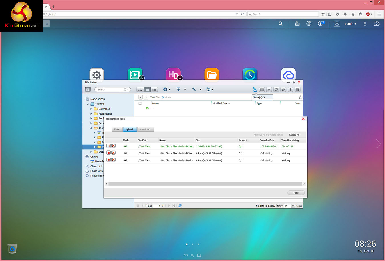 Transferring files to and from the NAS is a rapid process as the combination of Celeron J1900 and DDR3 provides the necessary power to drive the process along. No doubt our choice of four 4TB WD Red hard drives also helped as they are good fast drives.