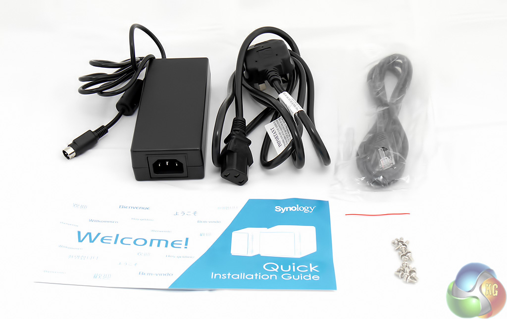 Inside the box you get the usual external power brick, an Ethernet cable and a bag of screws, however these are only necessary for 2.5-inch HDD/SSD as 3.5-inch HDDs use a tool-free mounting system.