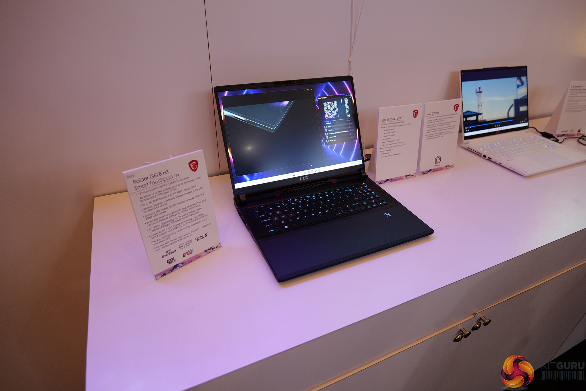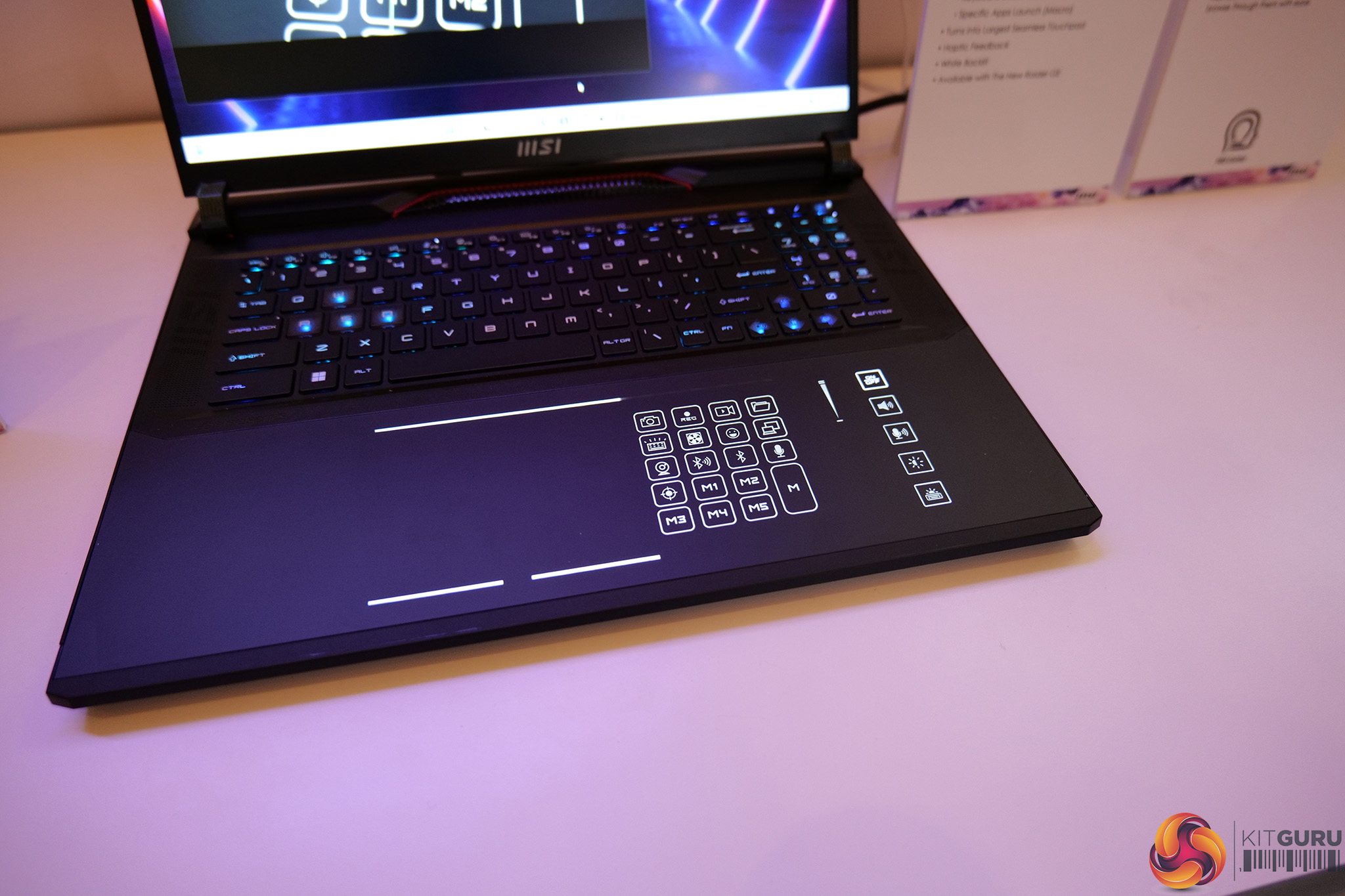 At the top-end of MSI's laptop lineup you'll find the new Titan GT77, equipped with a 4K/144Hz Mini LED display, in addition to powerful hardware under the hood, including the new Intel Core i9-13980HX processor and RTX 4090 laptop GPU. In the video above, you'll see Luke run a Cinebench test on the laptop, where this chip scores similarly to a desktop Ryzen 9, sacrificing very little in performance while moving to a portable form factor. The other ultra high-end laptop MSI has on display is the new Raider GE, equipped with a QHD/240Hz display, but packing a Core i7 HX-series processor instead, alongside an RTX 4080 laptop GPU. This laptop also comes equipped with a smart touch pad, allowing you to set up a backlit capacitive function keypad next to the trackpad surface.