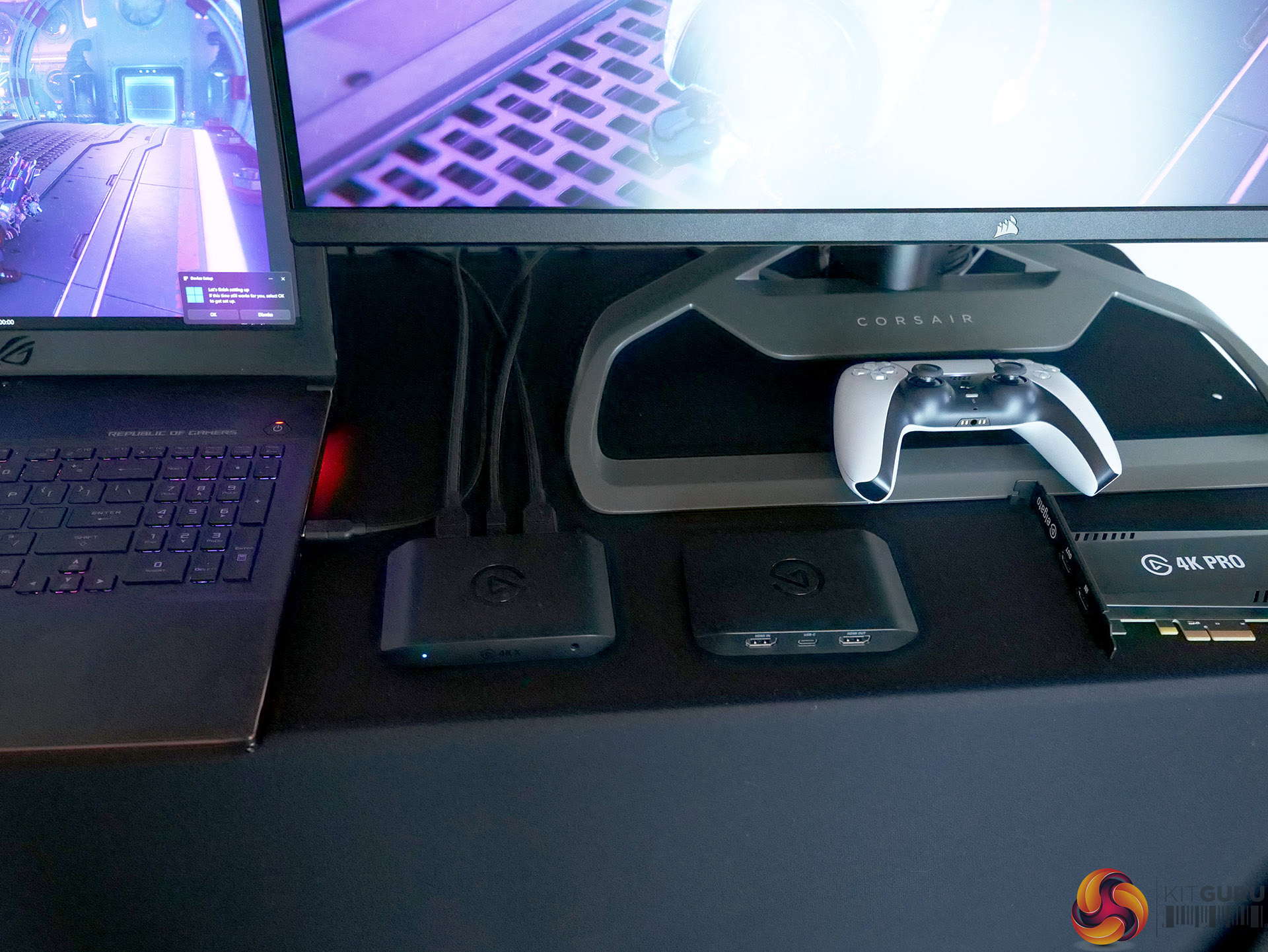 On the Elgato side, Corsair is showcasing the new 4K X External capture card, utilising HDMI 2.1 to capture 4K at up to 144Hz or 1080p at up to 240Hz. It'll be arriving in February, offering a high-end option that you don't have to directly install in your PC case. On the other hand, we have the 4K Pro Internal Capture Card, which also uses HDMI 2.1, up to 8K passthrough and simultaneous recording of 4K/60FPS or 1080p/240FPS.