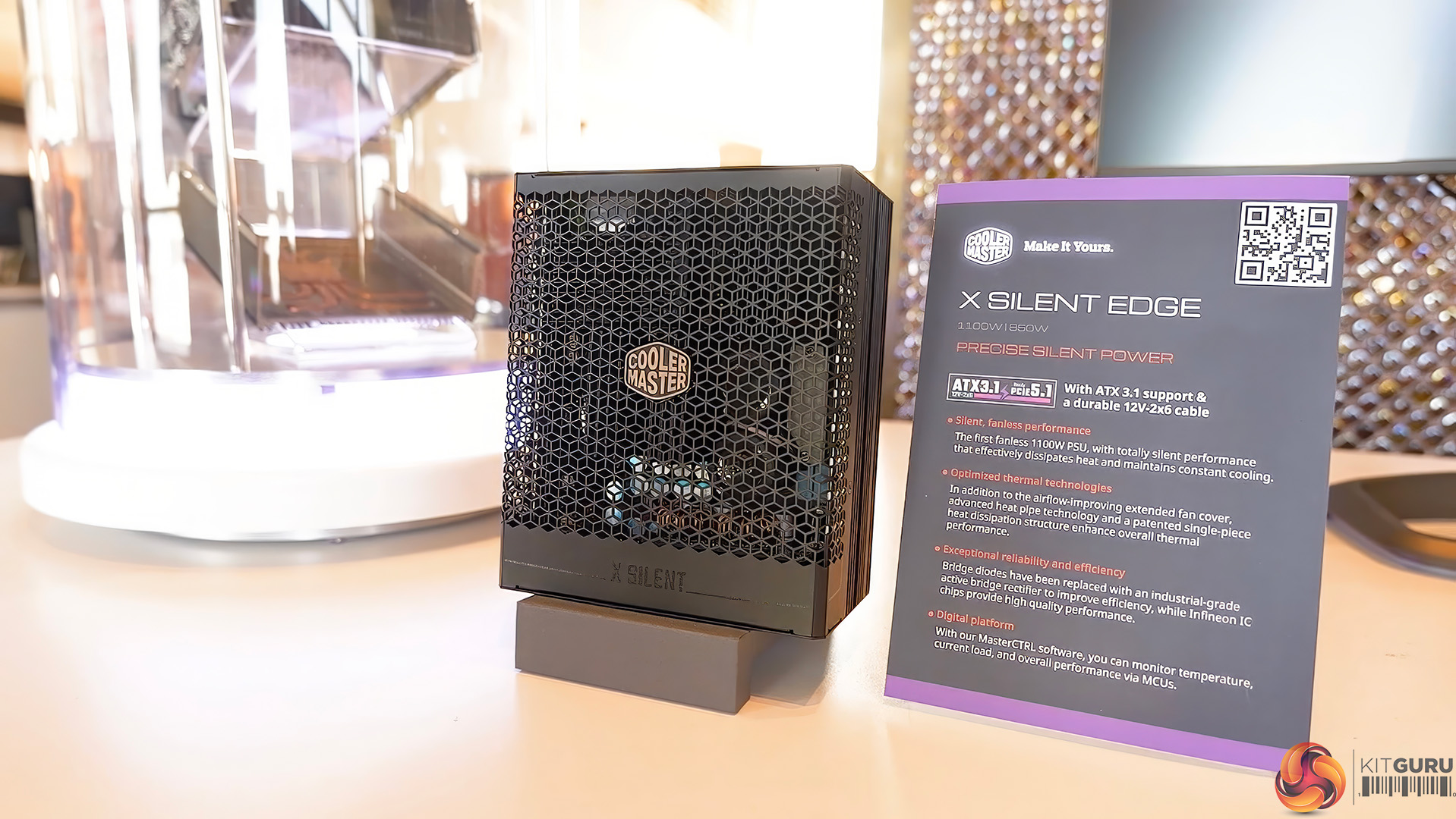 For power supplies, Cooler Master's new X Silent Edge PSU takes centre stage, using heatpipes to cool the unit passively without the need for a fan, while delivering up to 1100W of power. The X Silent Max PSU does use a fan instead, more specifically, a Cooler Master Mobius fan.