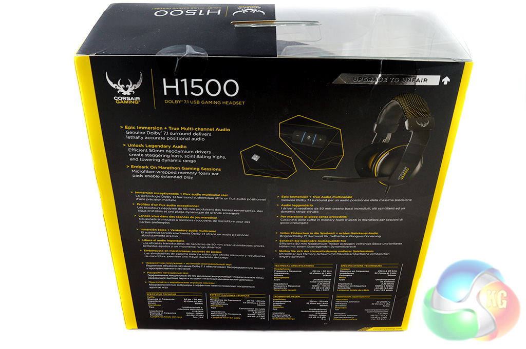 The back of the box elaborates on the same features, stating that the Dolby surround solution will deliver “lethally accurate positional audio”. The 50mm drivers promise to deliver “towering dynamic range” and the memory foam ear pads should allow users to to wear the headset for extended periods.
