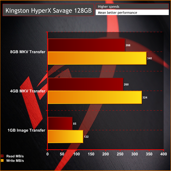 As you can see from our performance results, the Kingston HyperX Savage is quite the performer when it comes to large file transfers with read and write speeds similar to what is advertised on the box. However, we did see things dip in the 1GB image transfer test.