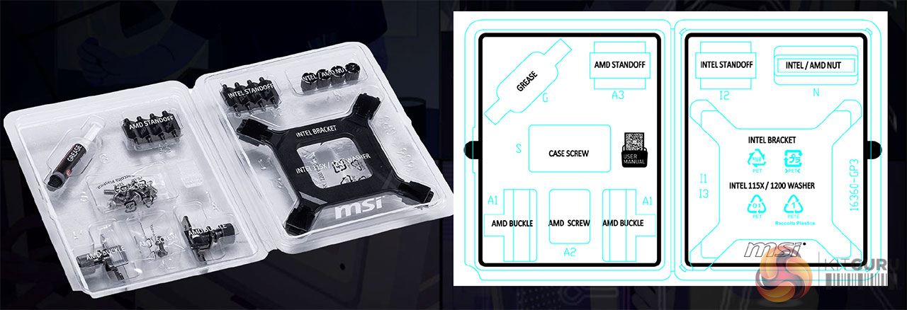 In response to customer requests, MSI has also changed the bags and packaging used for smaller components (like the mounting kit for coolers) now also has much clearer labelling. When presenting the new packaging, MSI told us that, in tests, it was no longer necessary to get 100% coverage between the cooler plate and the CPU. Their research has discovered that hotspots can get really intense – so it's more important that the most effective part of the cooler plate is in contact with the hottest part of the CPU. Cooling for the periphery of new CPUs is less important.