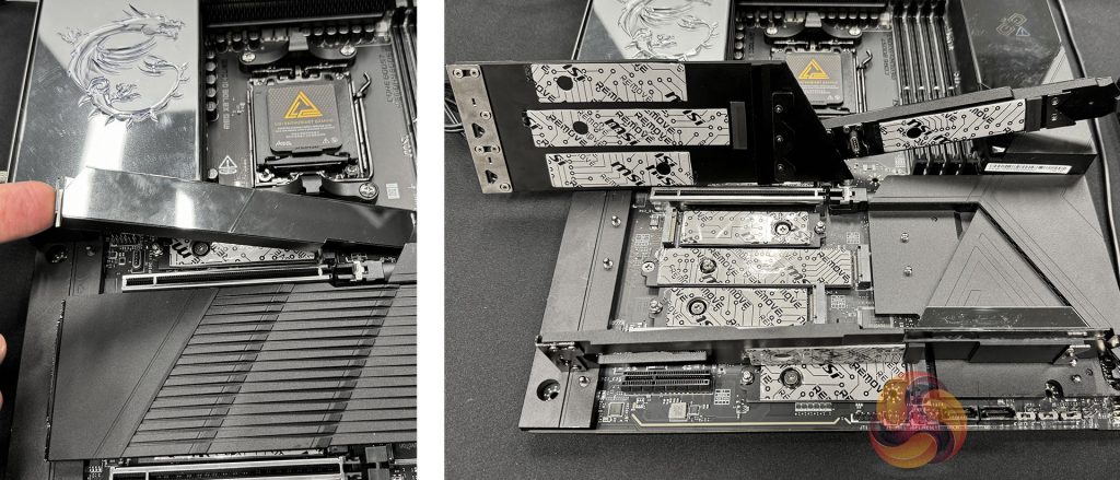 Forget fiddling with screws and tools. MSI has developed a latch system that allows users to install and secure M.2 SSDs with just a single finger. The thermal plate for SSDs is similarly designed, snapping into place without the need for a screwdriver. - PCIe Graphics Card Release