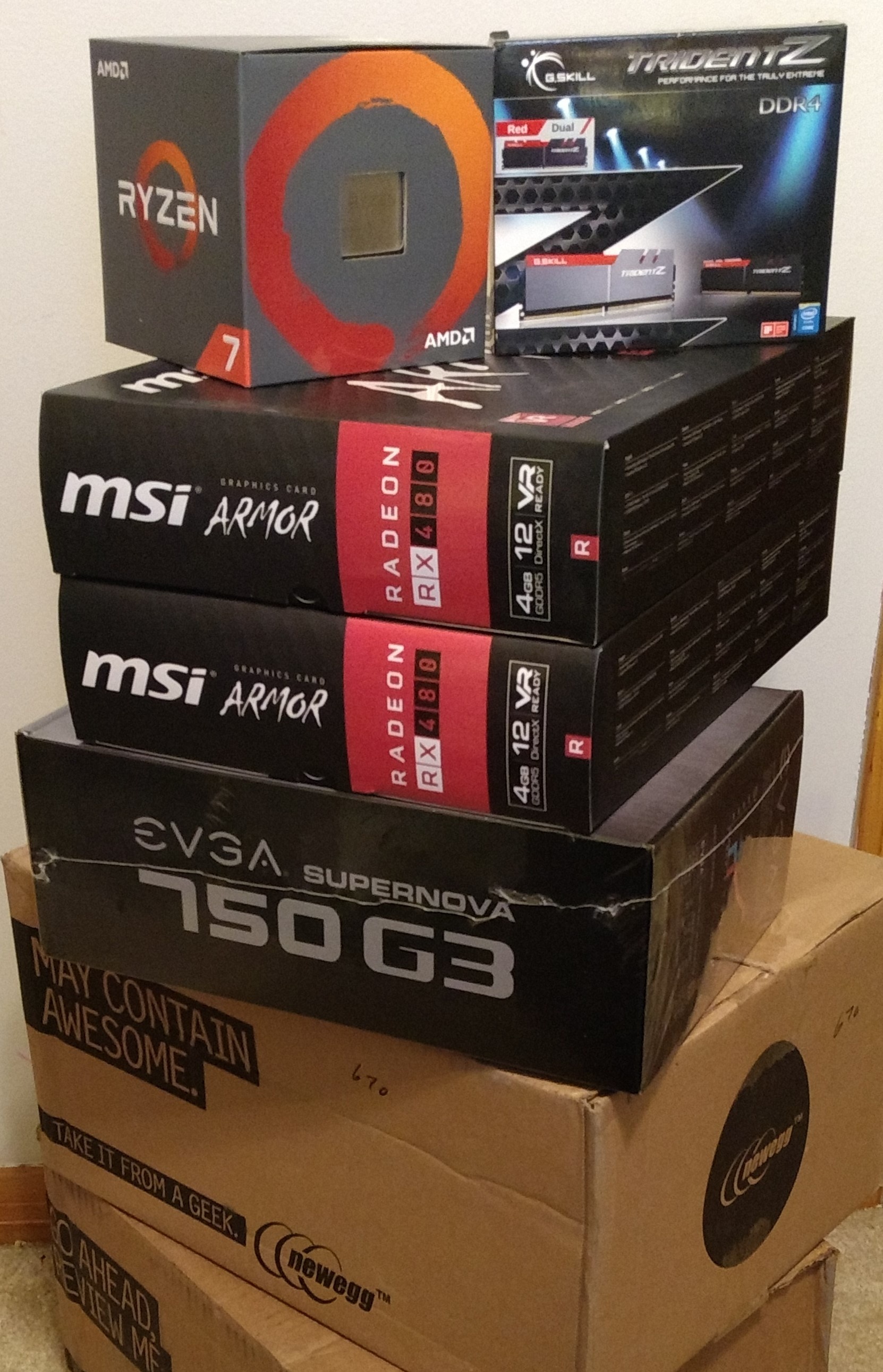 Sitting staring at an 1800x box/chip and no motherboard at the moment. 🙁 And of course the price of some components has dropped since too … what a mess.