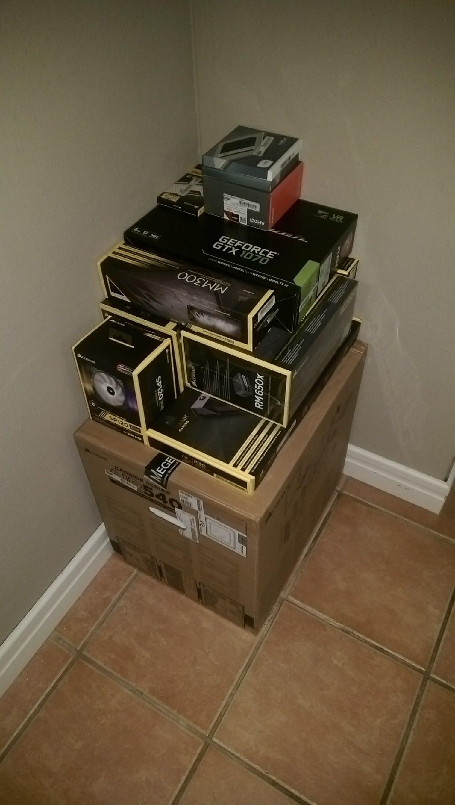 new cooler, and ram sitting in a box, cpu coming today… still no freakin asus hero. Beating my head into a wall waiting on this. Bought a 4k monitor already have that hooked up at least. Driving me insane waiting.