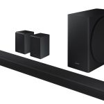 The HW-Q950T delivers 9.1.4-channel audio, which is the upper limit of channels available in a single soundbar. This model also comes with two wireless rear speakers for more convincing surround sound. The HW-Q900T does not include the rear speakers, but does include a subwoofer. Both sound bars support Dolby Atmos and eARC, all while shaving down the physical size of the sound bar, which is almost 14mm slimmer than the 2019 equivalent.