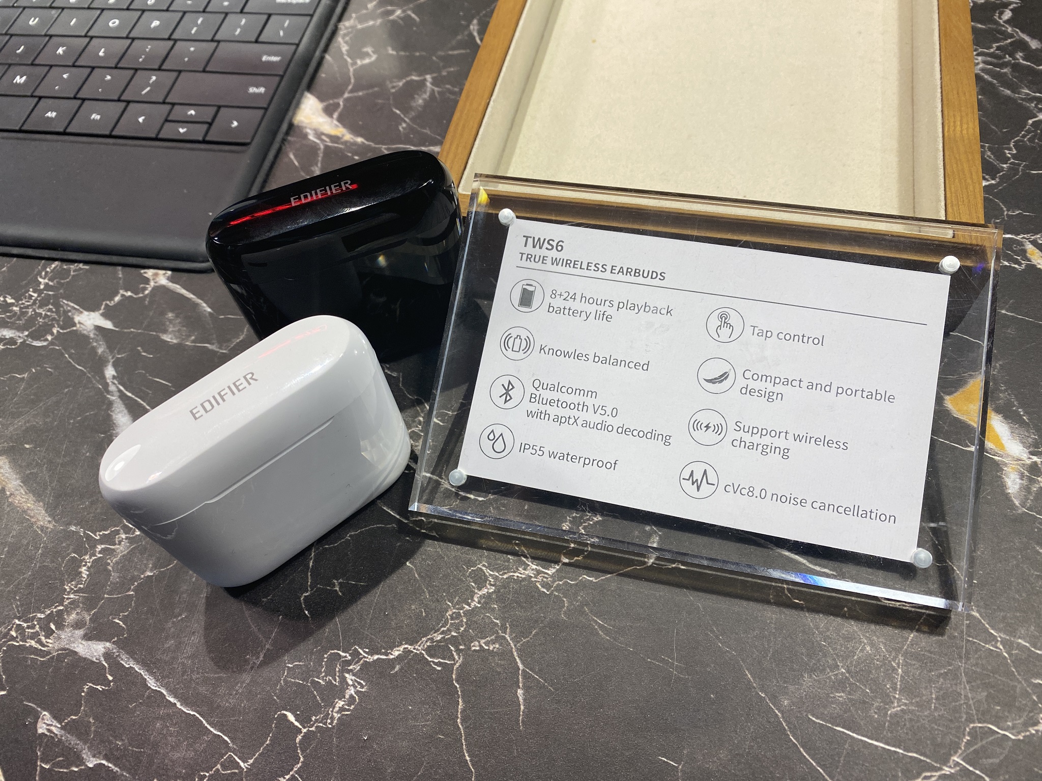 Edifier also launched the compact TWS6 wireless earbuds. With the TWS6, Edifier listened to customer feedback and created a more compact set of earbuds for those users with smaller ear canals, that found larger earbuds to be uncomfortable. The charging case has a durable scratch-resistant coating, the TWS6 earbuds are water-resistant and feature an 8-hour playback time with an addition 22 hours via the charging case.