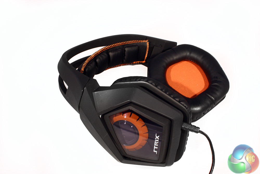 The STRIX Pro is a very eye catching headset. The main body is finished in matt black, giving it a subdued appearance – despite the bright orange secondary colour. The plastic used has a very slight texture, making it quite grippy, but not rough.