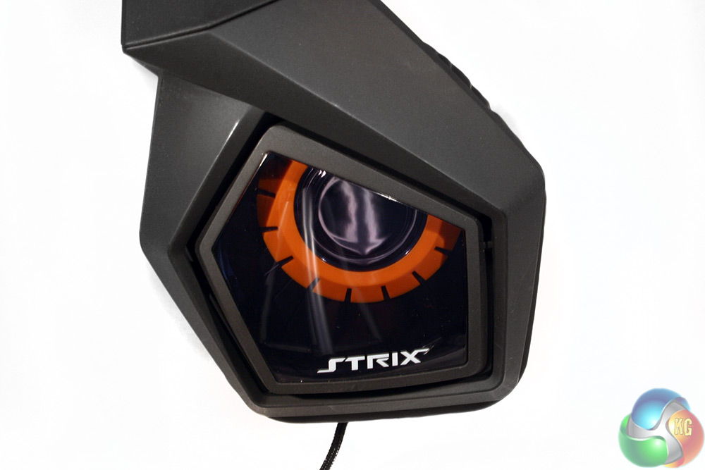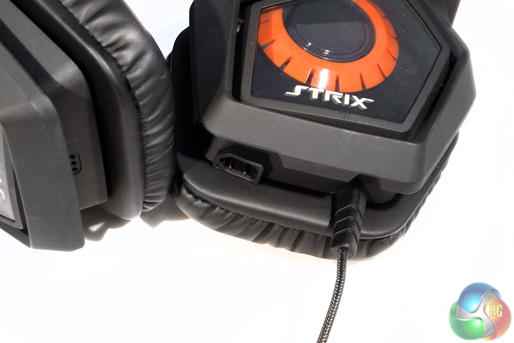 The earcups are able to tilt towards and away from the head while rotating fully around so that the “eyes” on the side of the earcups face away from you. There is a little flex in the other direction which bodes well for the life of the headset, especially if you are rough with handling. Unfortunately this flex means that the STRIX PRO can make some creaking sounds when moved around.